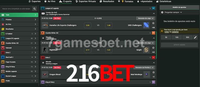 A aposta 216bet oferece aos jogadores a experiência mais conveniente de apostas em eSports!